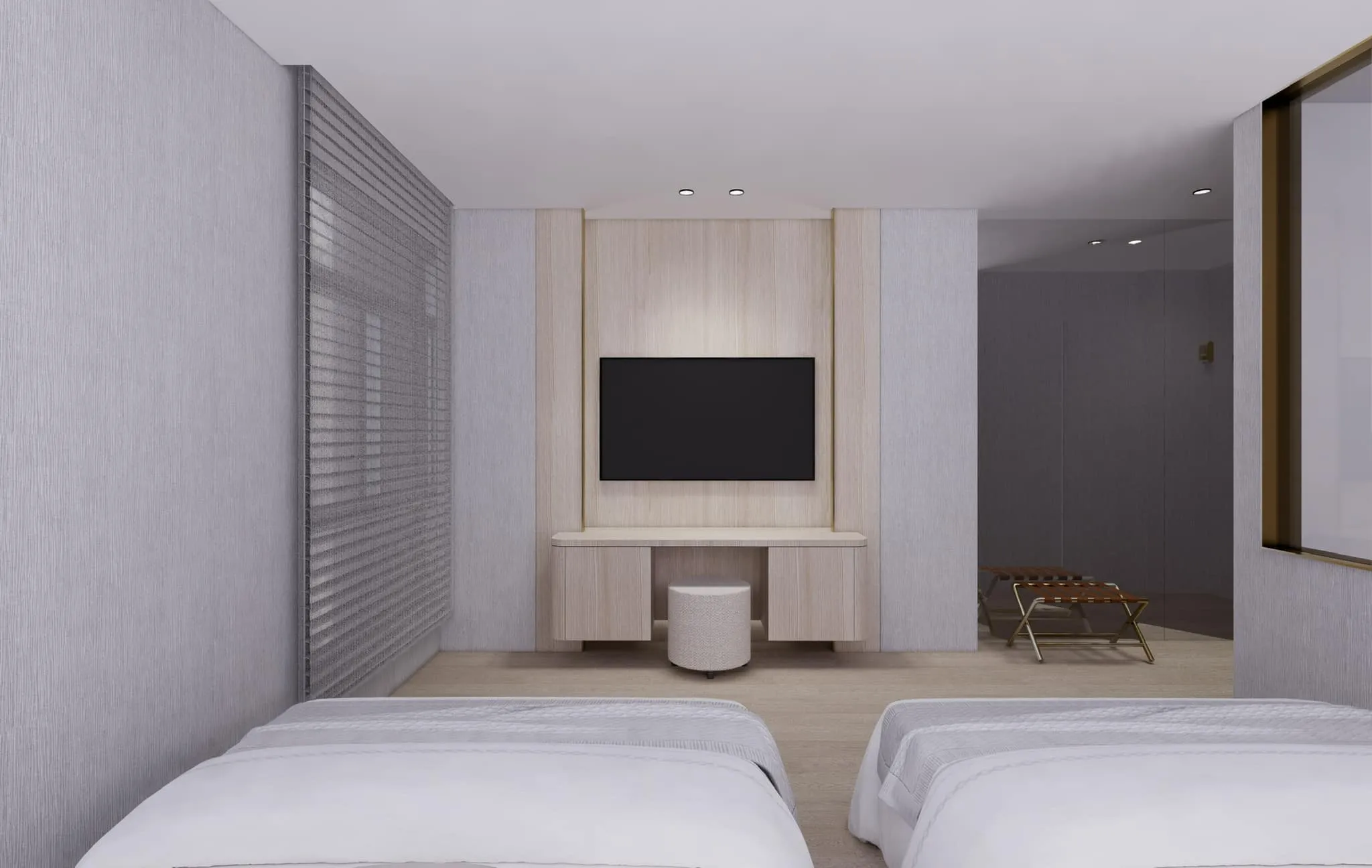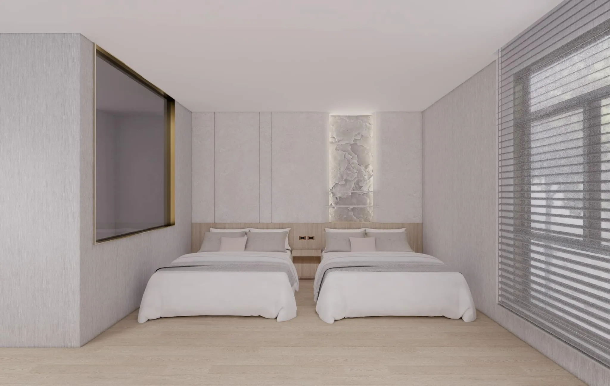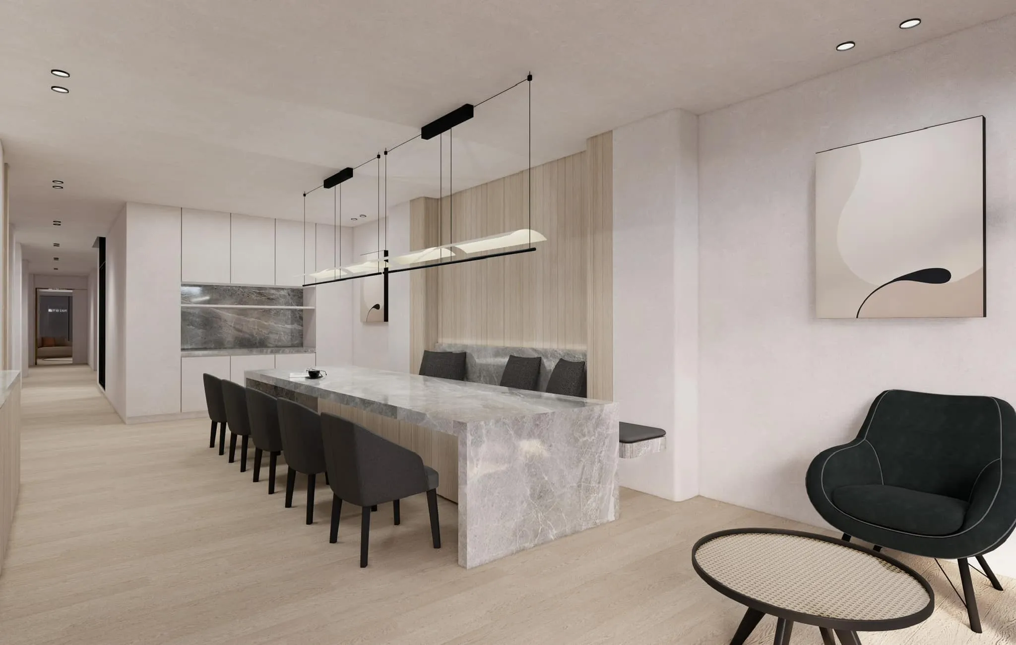 原木風與石材結合相互碰撞,大面積的開窗引入自然光線